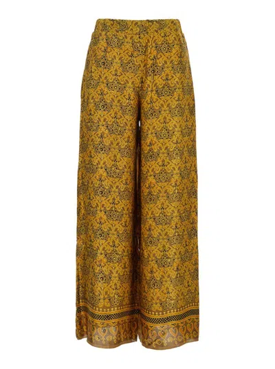 'iris' Multicolor Pants With Wide Leg And All-over Print In Yellow