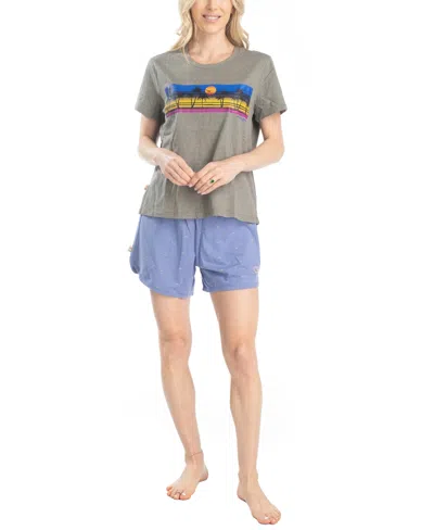 Women's Day Breakers T-shirt/short Set In Blue,heather Gray