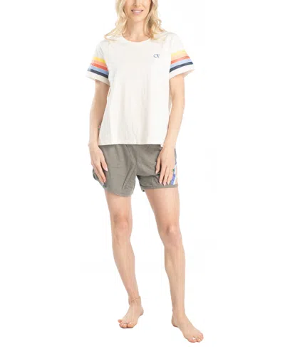 Women's Day Breakers T-shirt/short Set In Heather Gray,off White