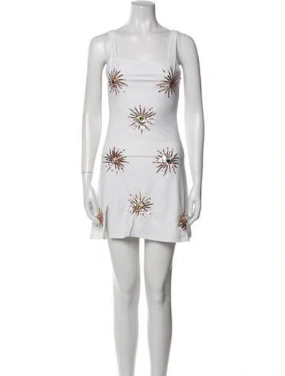 Pre-owned Printed Beaded Accents One-piece In White