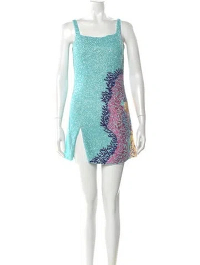 Pre-owned Printed Mini Dress In Blue