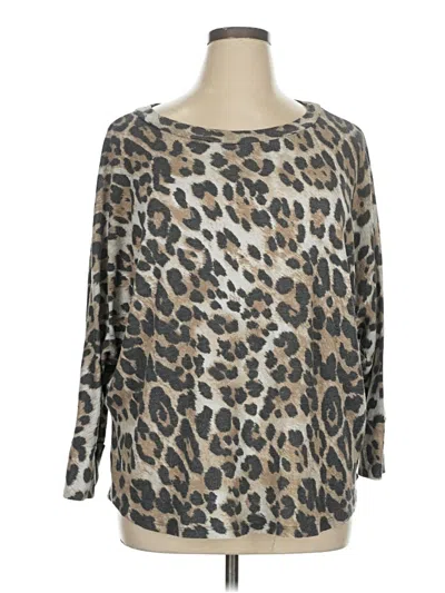 Pre-owned Short Sleeve Top Tan Scoop Neck Tops In Brown