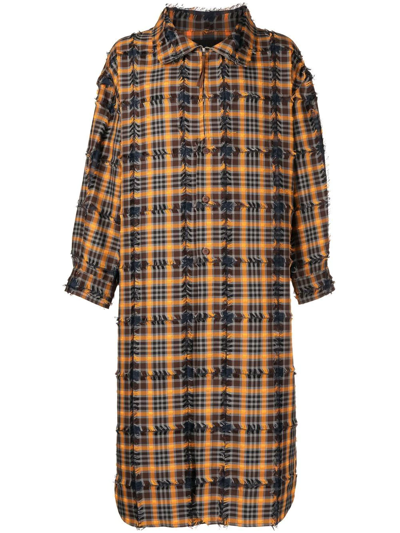 Urdu Checked Frayed Coat In Orange