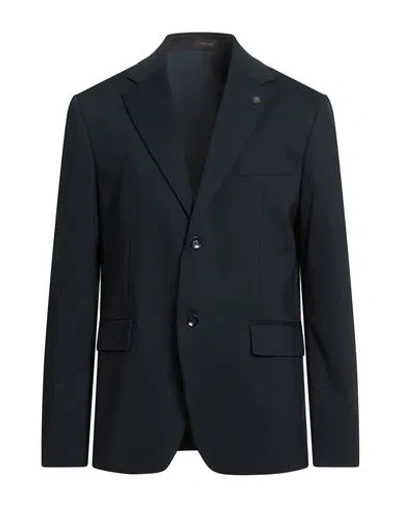 Man Blazer Midnight Blue Size 42 Polyester, Viscose, Wool, Elastane In Black