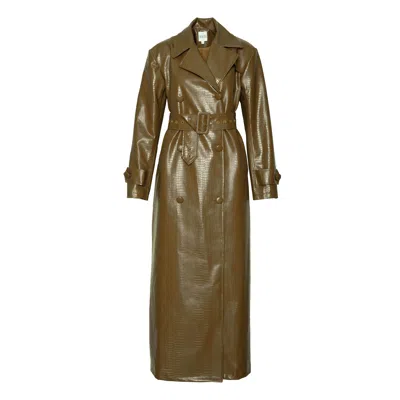 Women's Green Ono Faux Leather Trench Jacket In Olive