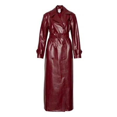 Women's Red Ono Faux Leather Trench Jacket In Burgundy