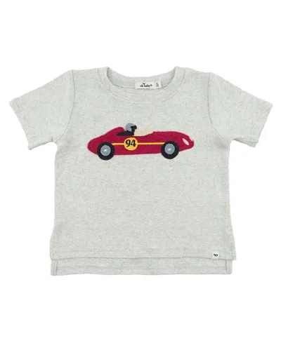 ! Unisex Racecar Applique Raw Edge Slub Tee - Little Kid In Gray