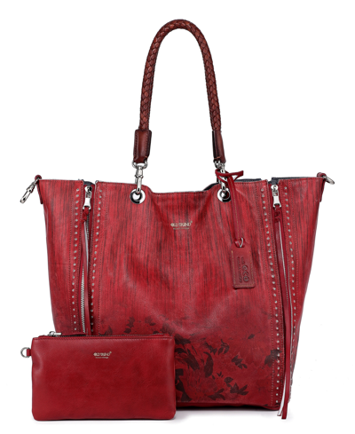 Women's Genuine Leather Dancing Bamboo Tote Bag In Burgundy