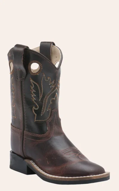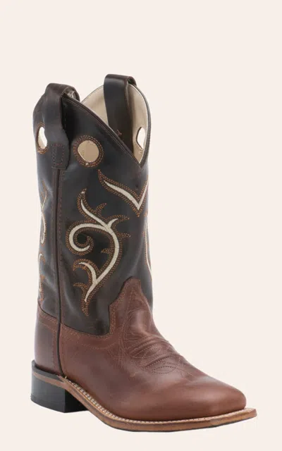 Youth Burnt Tan And Navy Blue Wide Square Toe Cowboy Boots In Brown