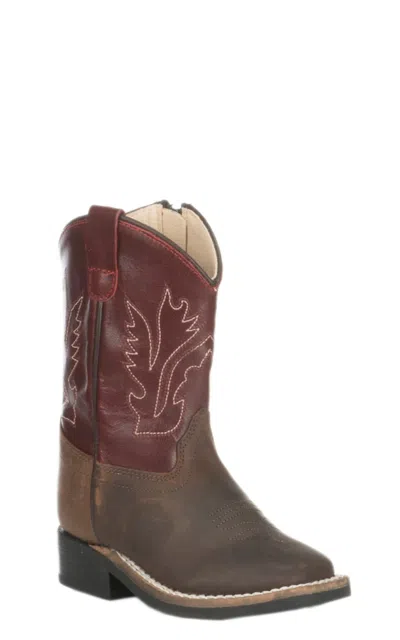 Babies' Toddler Brown And Wine Corona Calf Square Toe Cowboy Boot