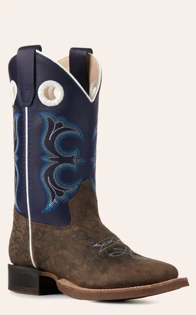 Kids' Dark Brown And Wipe Out Blue Wide Square Toe Cowboy Boot In Multi