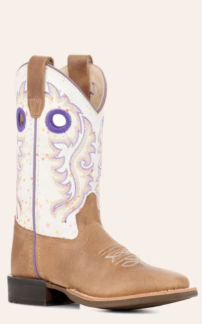 Youth Light Brown And Rainbow Crackle Wide Square Toe Cowboy Boots