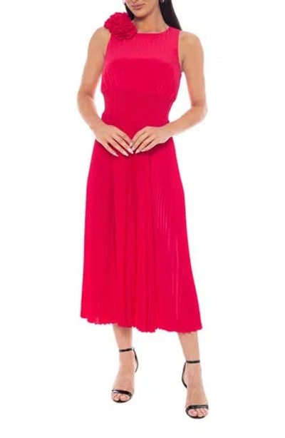 Rosette Pleated A-line Midi Dress In Red