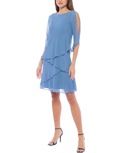 Capelet Overlay Pleated Chiffon Dress In Blue