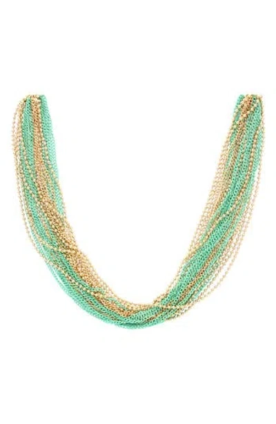 Layers Of Fun Metal Fringe Necklace In Gold-green