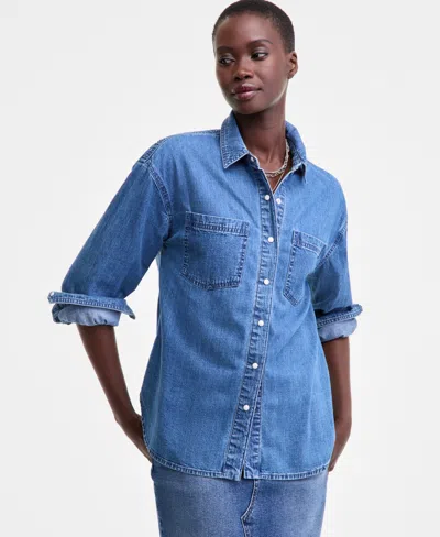 Women's Denim Patch Pocket Shirt, Macy's Exclusive In Blue