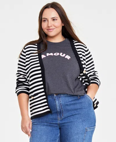Trendy Plus Size Short-sleeve Tipped Sweater, Macy's Exclusive In Gray