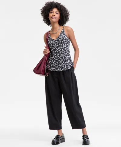 Women's Floral-print Double V-neck Tank, Macy's Exclusive In Black