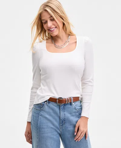 Women's Square-neck Puff-sleeve Top, Exclusively At Macy's In White