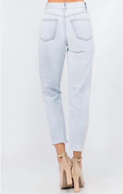 Mom Cropped Straight Fit Jeans In Acid Bleach Wash In Blue