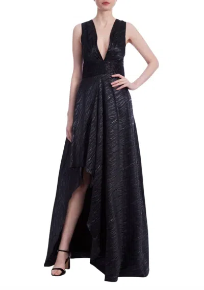 Deep Plunge V-neckline Metallic Gown Dress In Black
