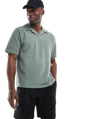 Relaxed Fit Textured Revere Collar Shirt In Green
