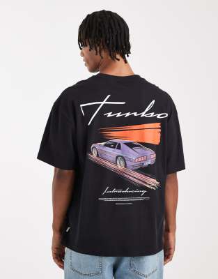 Oversized Fit T-shirt With Graphic Turbo Print In Black