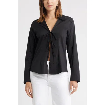 Tie Front Puff Sleeve Blouse In Ivory- Grey Q Campy Dye