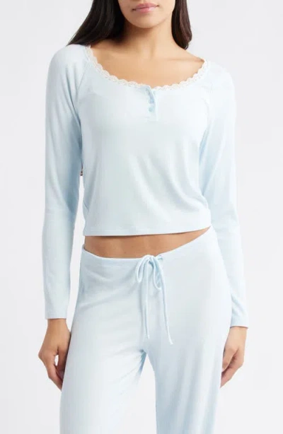 Daydream Lace Trim Rib Crop Top In Blue