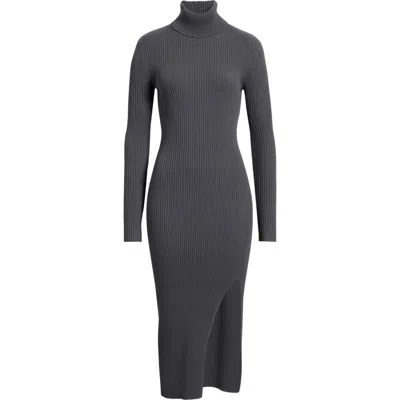 Rib Long Sleeve Turtleneck Sweater Dress In Gray