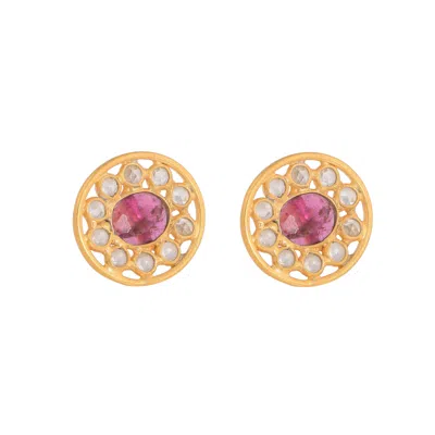 Women's Gold / Pink / Purple Crystal & Dark Pink Tourmaline Studs In Multi