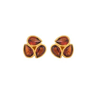 Women's Gold / Red Tiny Teardrop Studs In Garnet In Multi