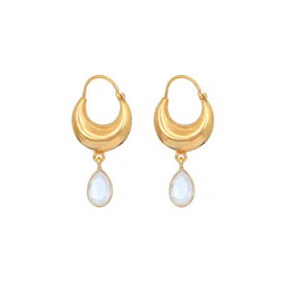 Women's Gold / White Crescent Moon Gold Hoops - Rainbow Moonstone