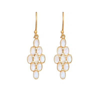 Women's Gold / White Dew Drop Jali Earrings - Rainbow Moonstones In Multi