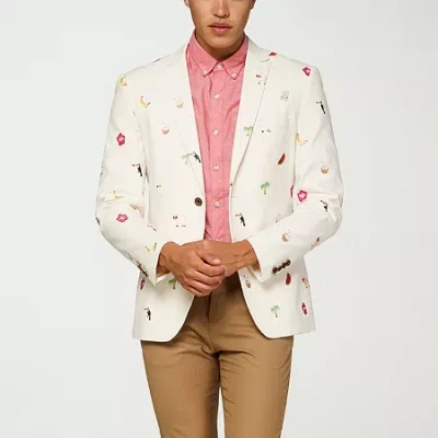 Tropical Embroidered Mens Slim Fit Blazer In White