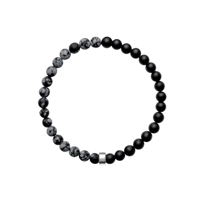 Black / White / Grey Aro Men's Snowflake Obsidian & Onyx Bracelet Silver Bead In Multi