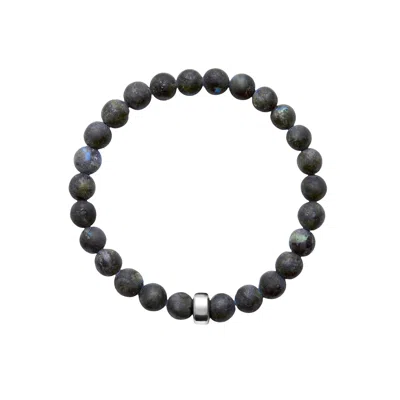 Blue / Grey / Silver Aro Men's Larvikite Bracelet Silver Bead - Large In Multi