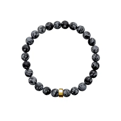 Gold / Black / White Aro Men's Snowflake Obsidian Bracelet Gold Bead In Multi