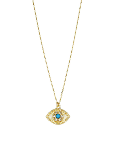 Women's 14k Yellow Gold, Turquoise Evil Eye Pendant In Yellow Gold/turquoise