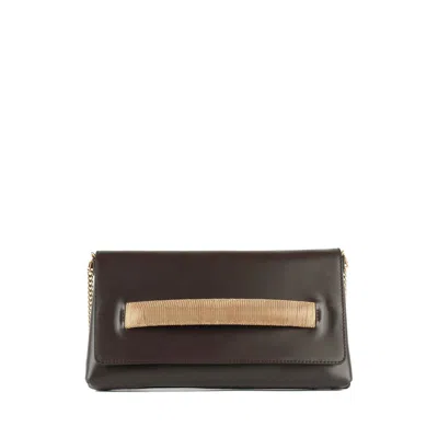 Chocolate Leather Gossip Nappa Chain Clutch In Brown