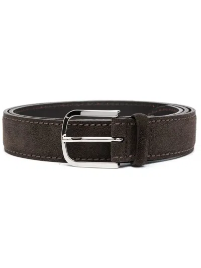 Buckle-fastening Leather Belt In Brown