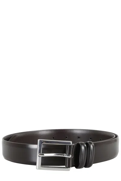 Buckle-fastening Leather Belt In Black
