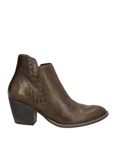 Woman Ankle Boots Khaki Size 11 Soft Leather In Beige
