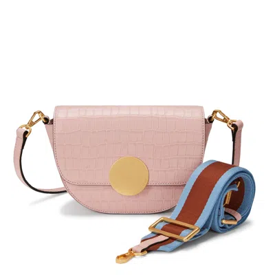Rookie Crescent Croc Embossed Leather Crossbody Bag In Pink