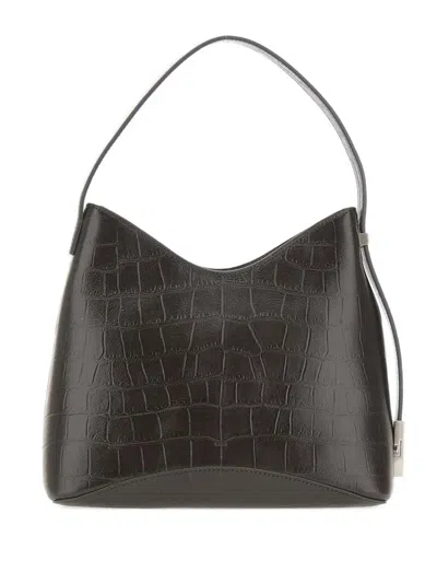 Crocodile-effect Leather Shoulder Bag In Brown