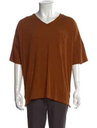 Pre-owned V-neck Short Sleeve T-shirt In Brown