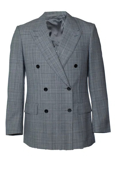 Kingsman, Prince Of Wales Checked Wool Blazer In Gray
