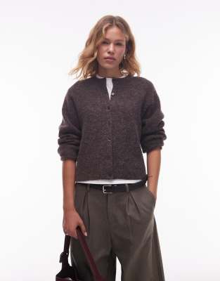 Alpaca And Wool Hairy Knit Short Cardigan In Brown