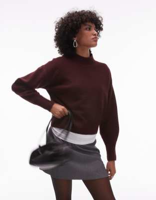Supersoft Alpaca Wool Blend Sweater With Wide Sleeves In Burgundy