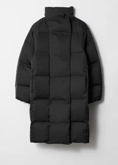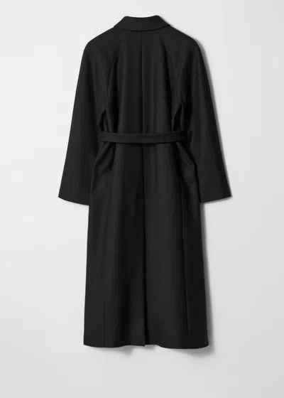 Wool Blend Maxi Coat With Faux Leather Buckle Detail In Black